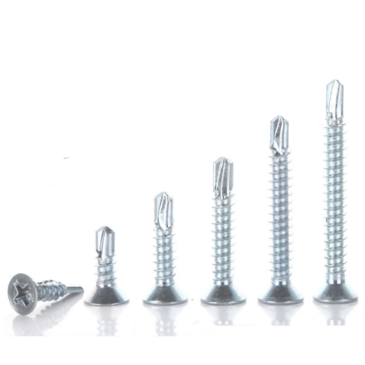 Flat Countersunk Self Drilling Screws Zinc Standard Bright Bue or White Zinc Plating