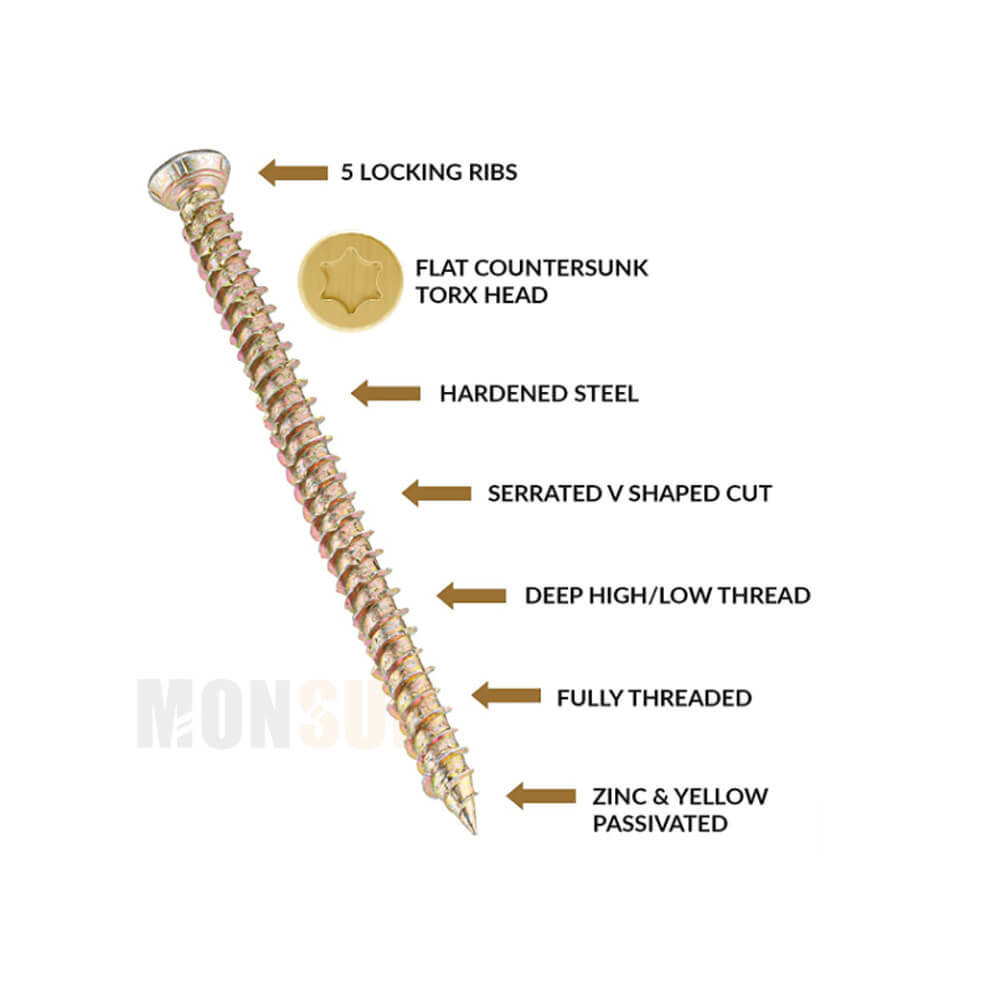 Concrete screw offers a rapid and effective light duty anchoring system for fixing into concrete, brick, stone, concrete block and wood.